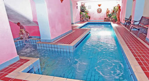 Services: reception, hall, TV room, restaurant, reading room, Internet access, bar, garden, outdoor pool with mineral water, indoor pool 36°С with hydro massage and vertical waterfalls, sauna (for additional fee of 5 euros), Turkish bath, sun umbrellas, deck chairs, parking area, laundry, porter service, lift, wi –fi - for free.